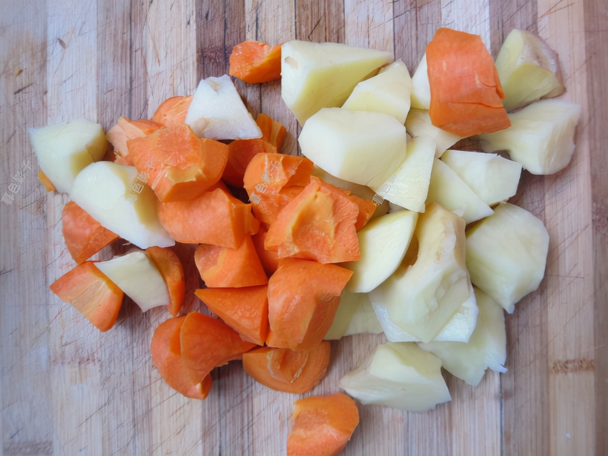 土豆和胡萝卜削皮之后要洗干净,然后切成块。