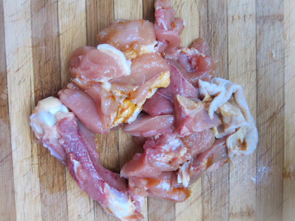 把鸡肉洗干净,然后切成块,可以按照自己的喜爱切块备用。