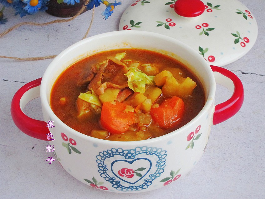 这道菜里的食材很不错。比如胡萝卜增强抵抗力还可间接消灭癌细胞。降糖降脂降低血脂,促进肾上腺素的合成,还降压强心。土豆可以作为主食食用,还可以做成各种菜。而且土豆的营养价值是非常多它减肥降脂,美容养颜。大头菜含有维生素A、维生素B族、维生素C和维生素D很丰富。具体功效有提神醒脑,大头菜含有大量的抗坏血酸和菜花是兄弟营养价值相同。