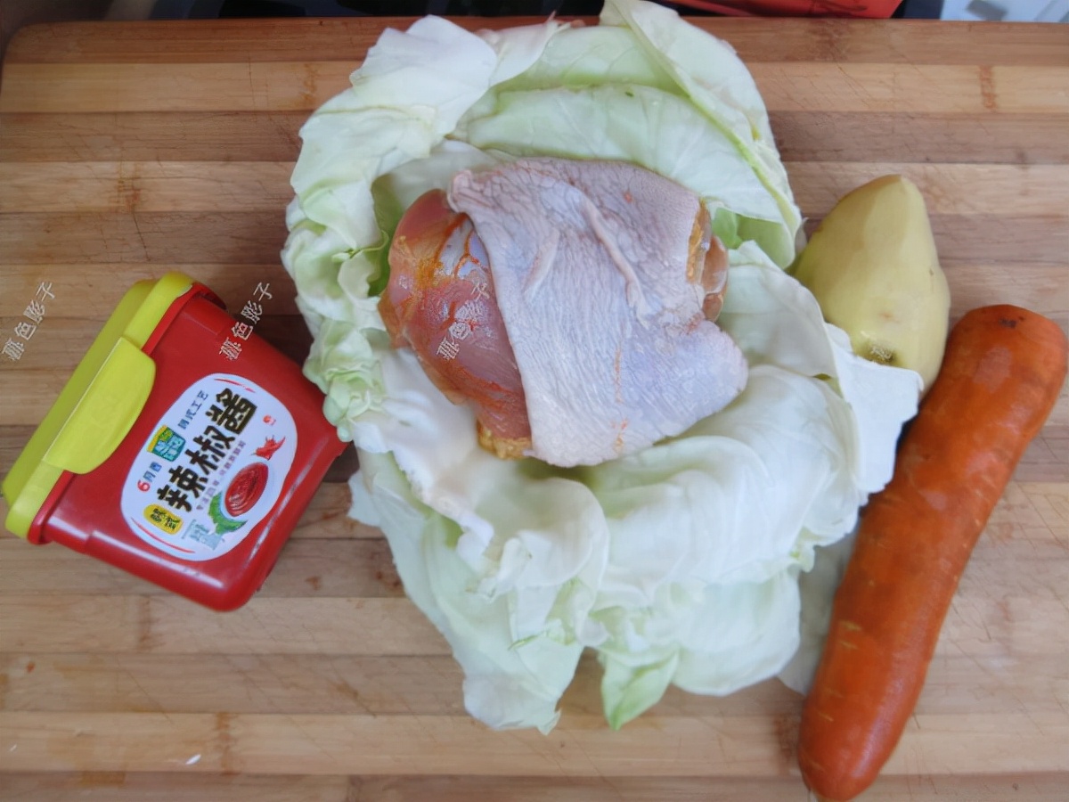 食谱;韩式鸡肉蔬菜酱汤 食材:鸡肉一块,土豆1个,胡萝卜1个,白菜适量。植物油1勺,六月香辣椒酱2勺。