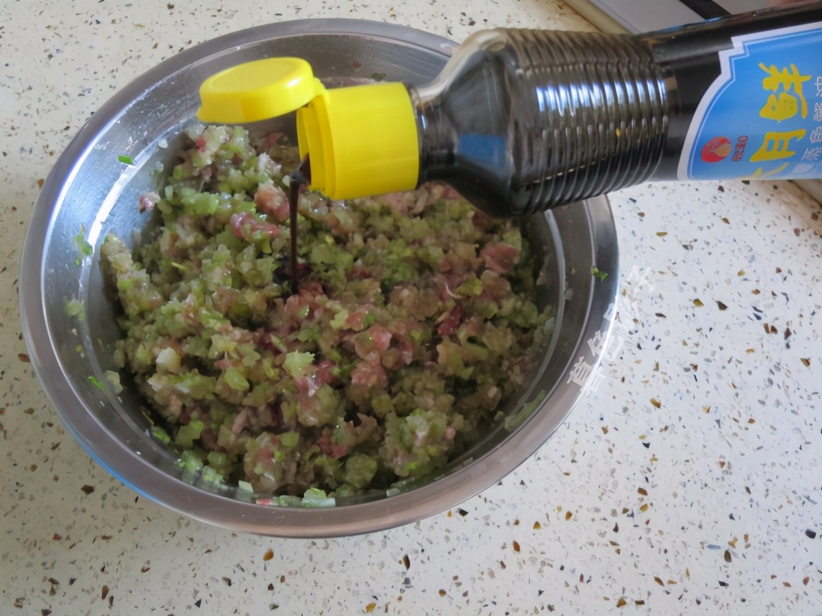 猪肉馅里加植物油,如果喜欢吃香味的加点香油,适量的六月鲜蒸鱼酱油,盐等等混合馅料。