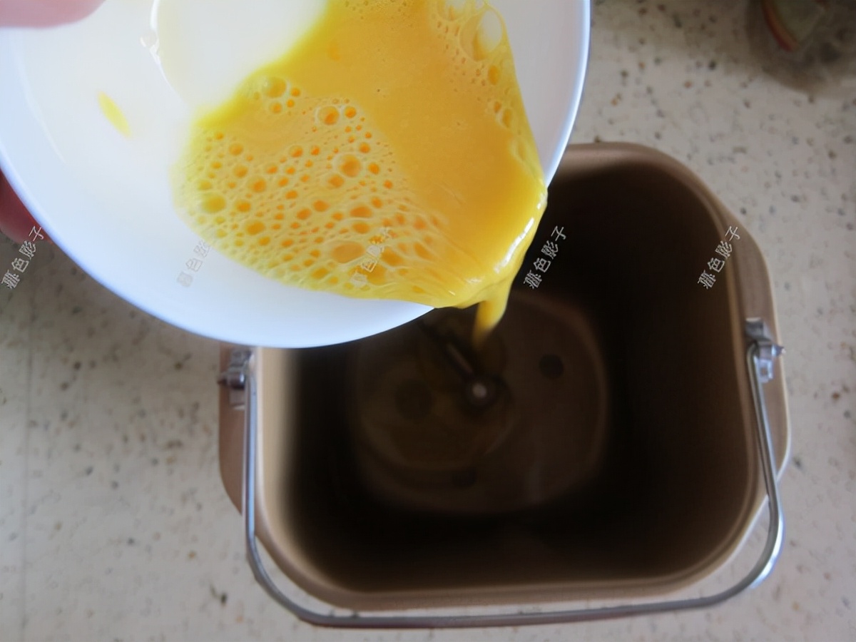 面包粉鸡蛋温水盐都放进面包机内,先搅打融合,加面包粉和酵母粉,设置揉面20分钟。