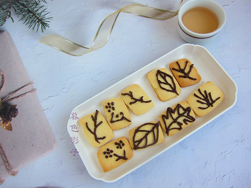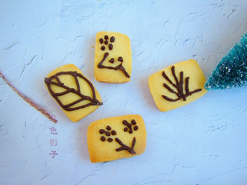 烤好的饼干及时取出来,巧克力先放进裱花袋里装好,然后隔热水融化下就好。随便画上点巧克力更好吃了。