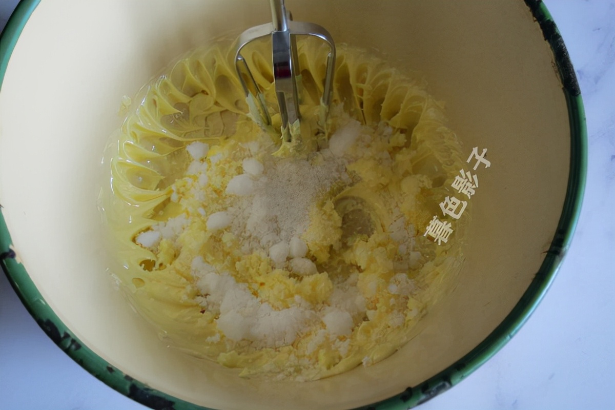 用电动打蛋器,把黄油和蛋液搅打成羽毛状,分次加白糖搅打融化即可。