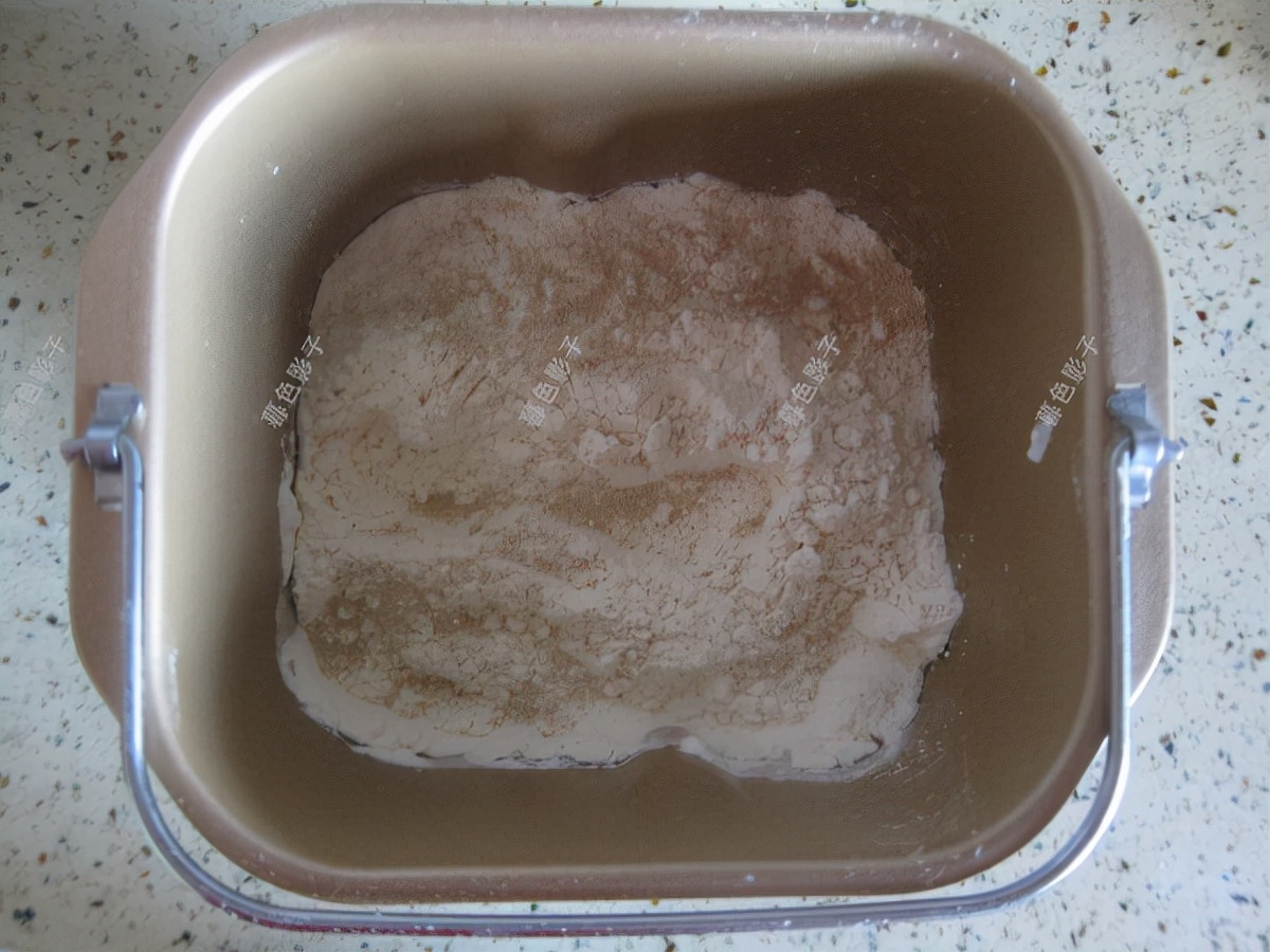 制作:备齐主要的食材,温度低把面包粉和鸡蛋油,先在室温下放一会这样利于面包发酵。把鸡蛋温水盐都放进面包机内,先搅打融合,加面包粉和酵母粉,设置揉面20分钟。可以直接在面包桶里发酵。