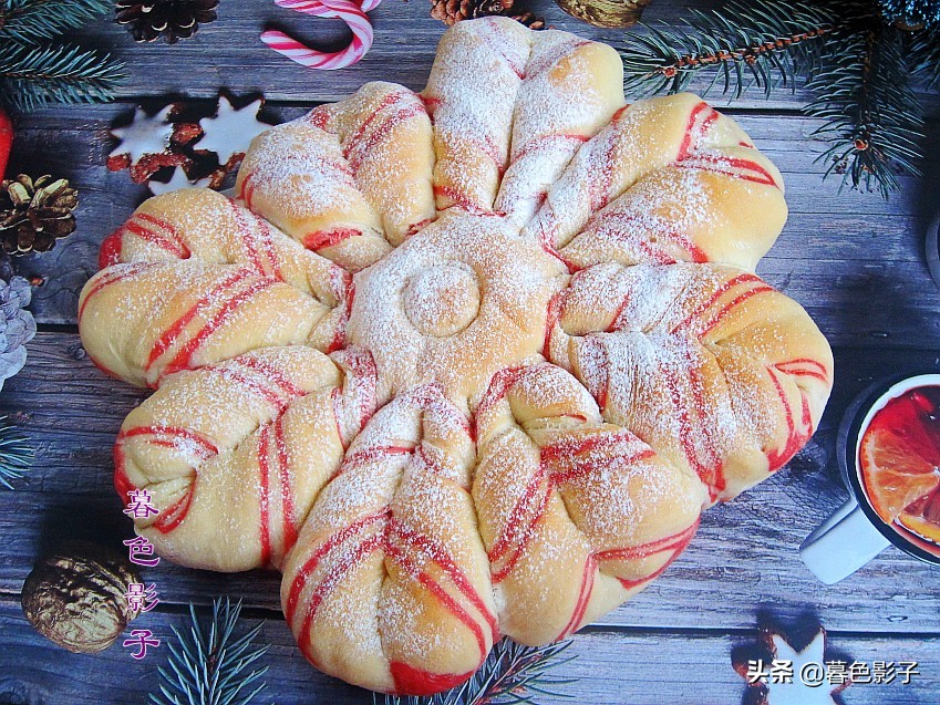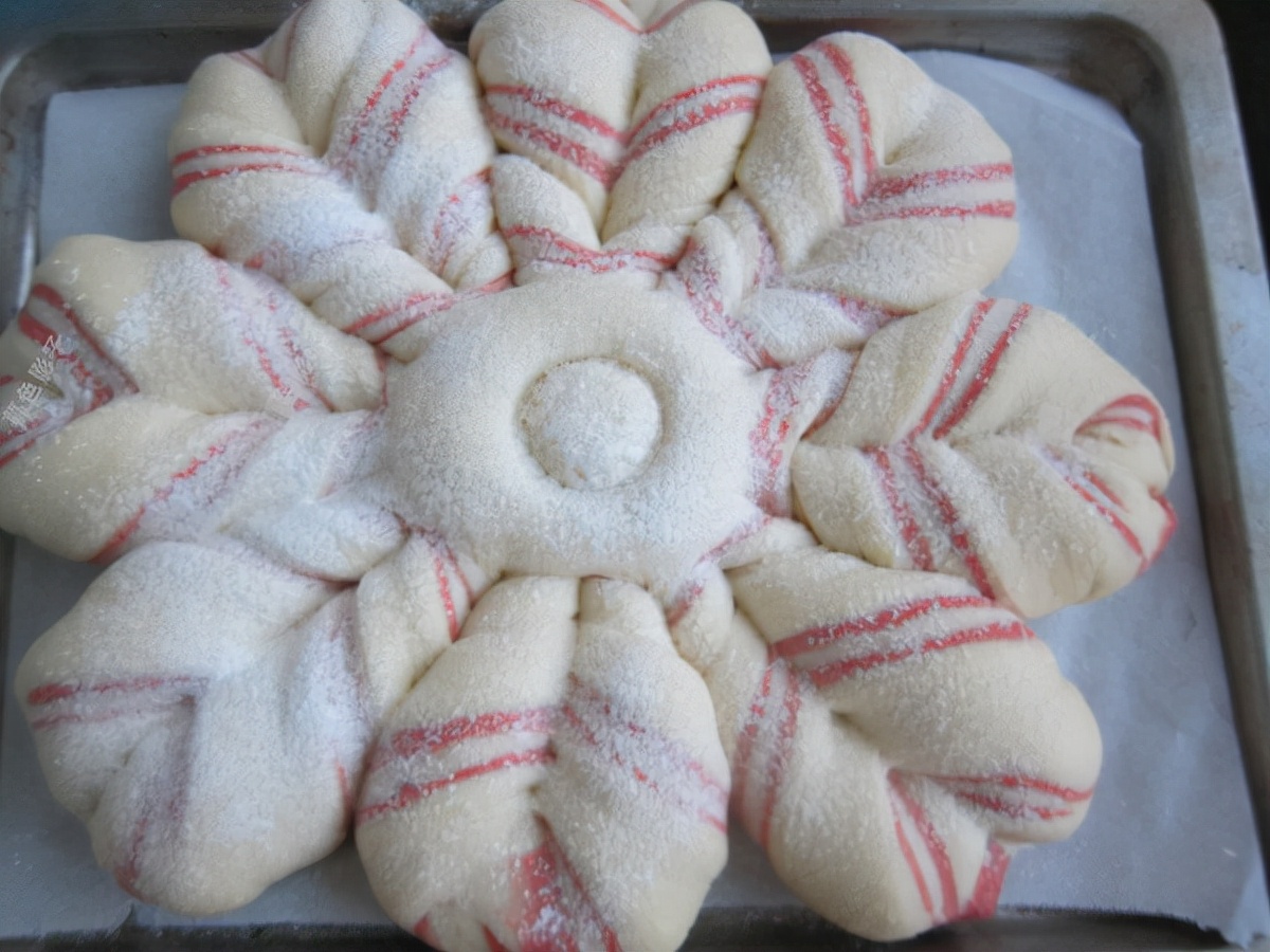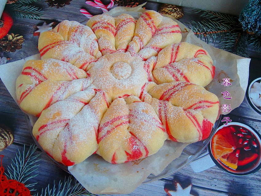 有人说做面包太麻烦了,其实很简单用面包机或者厨师机揉好面,整形就行了。比做馒头都简单,因为馒头要用手揉面,每个馒头都得揉几十下,这是我的体会。我每个星期都做面包。只是味道和外形不同了,这次是新年,做雪花样式的面包很适合。