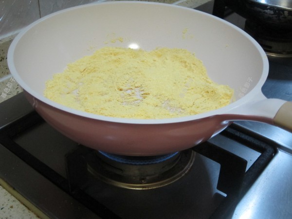 黄豆面也需要小火炒熟,大约炒15分钟左右,看量大的需要加时间,炒变色出香味即可。