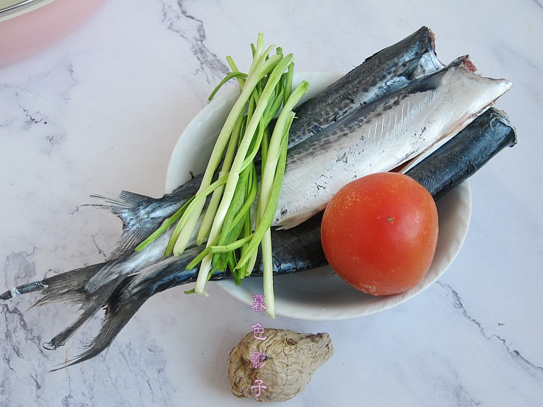 制作;1备齐做菜的主要食材,还有剪掉的内脏和鱼头部分。