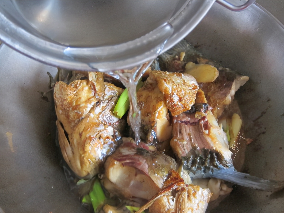 4,加适量的清水,不要加得太多,免得收汁很慢,海鱼熟得很快的。