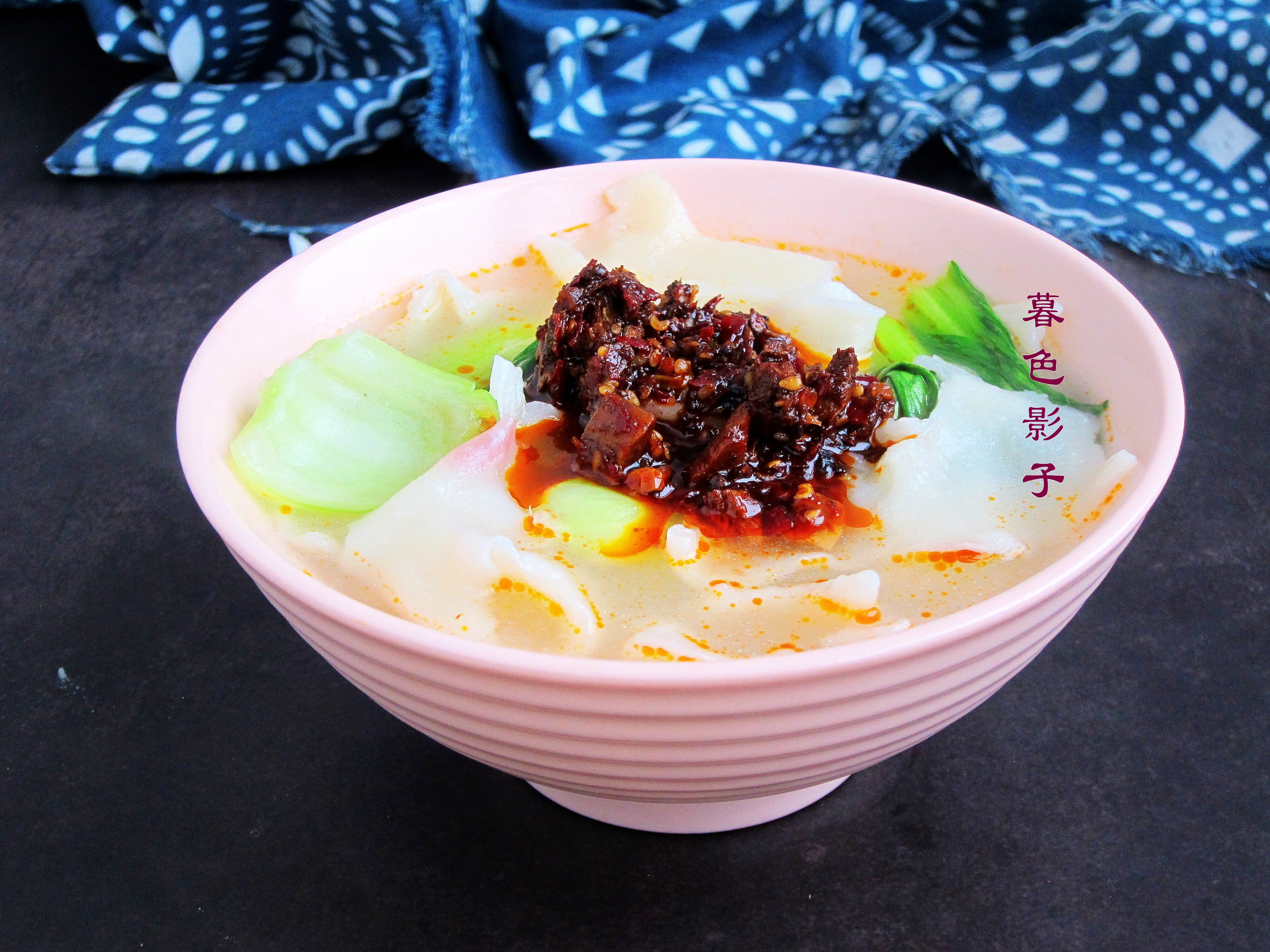撕成小块,再拉扯一下,放进开水锅里煮就行了。越薄越好吃。煮开锅就行了,面皮熟得快。