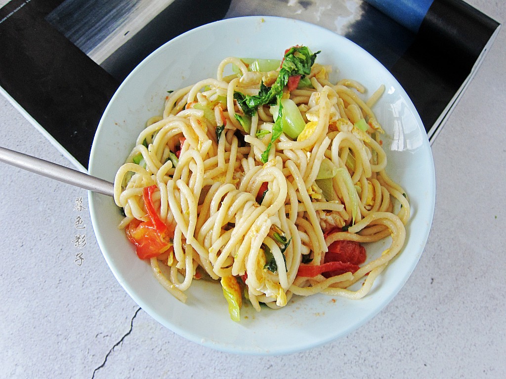 本菜谱炒面,可以是干挂面煮熟或者是买的切面,就是那种湿面,现场直接压面的那种。先煮熟了,用冷水冲一下,控干水分直接炒或者放冰箱里保存,吃的时候再炒。