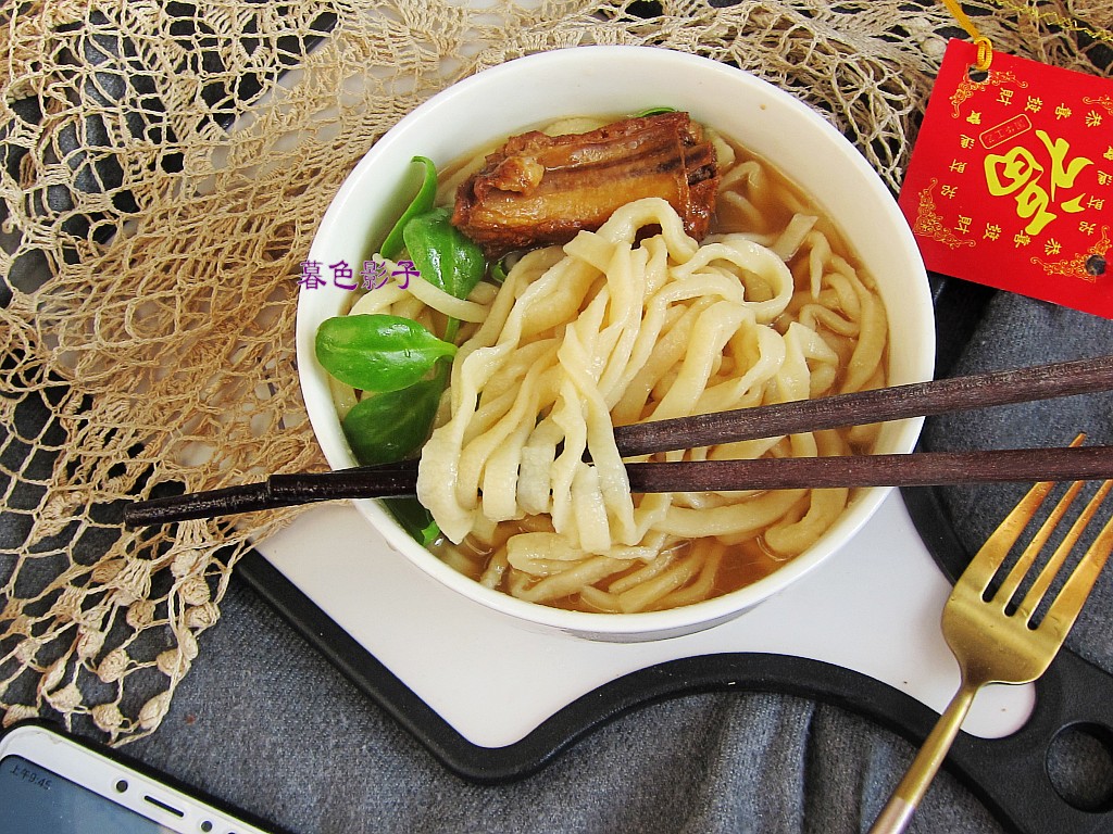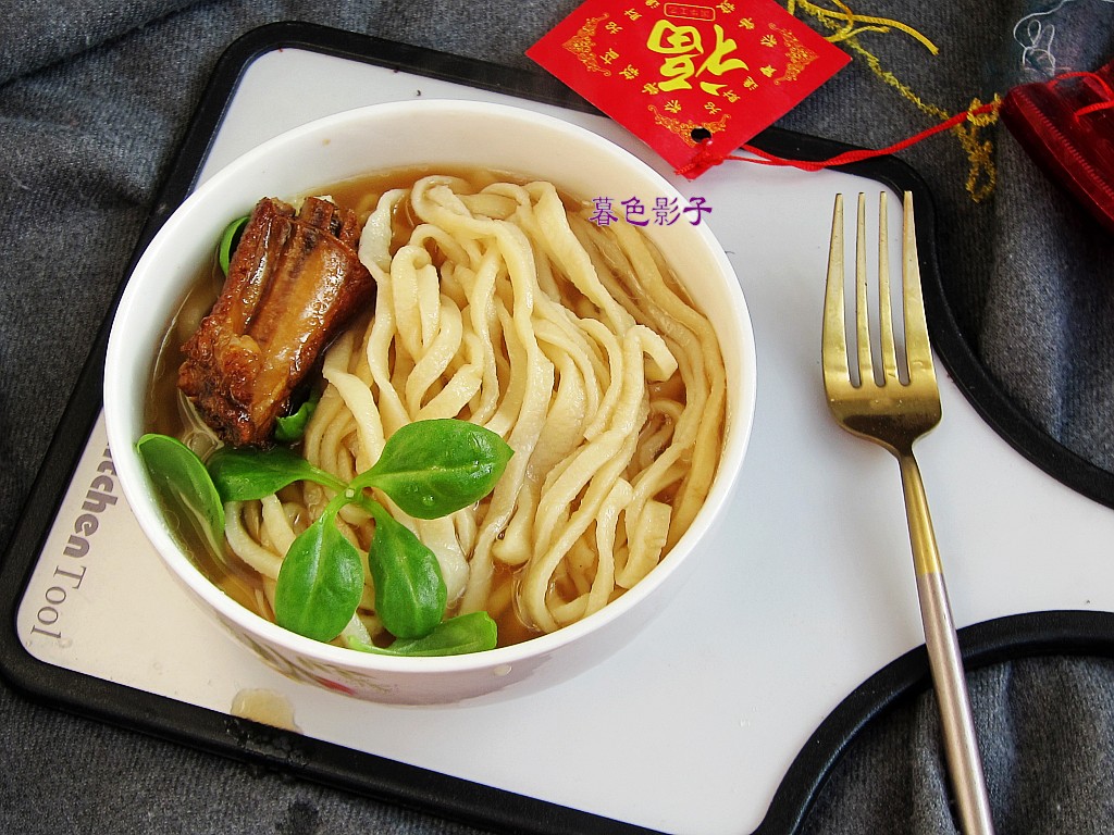 食材:面粉500克。清水210毫升,排骨适量,盐一勺,蔬菜适量。