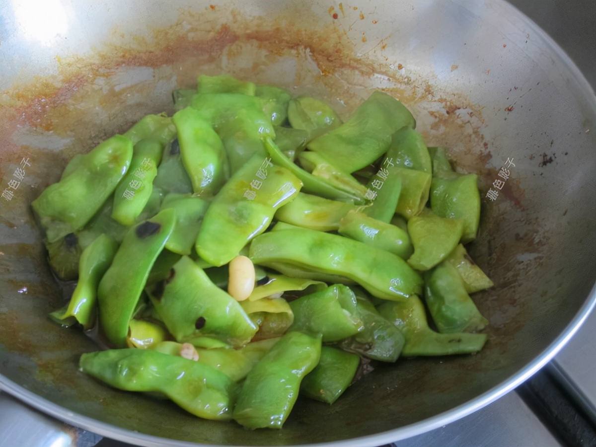 制作;豆角清洗干净掰开备用。锅内内植物油热了,加入豆角翻炒,加适量的麻辣酱料。