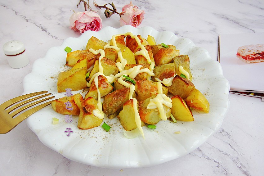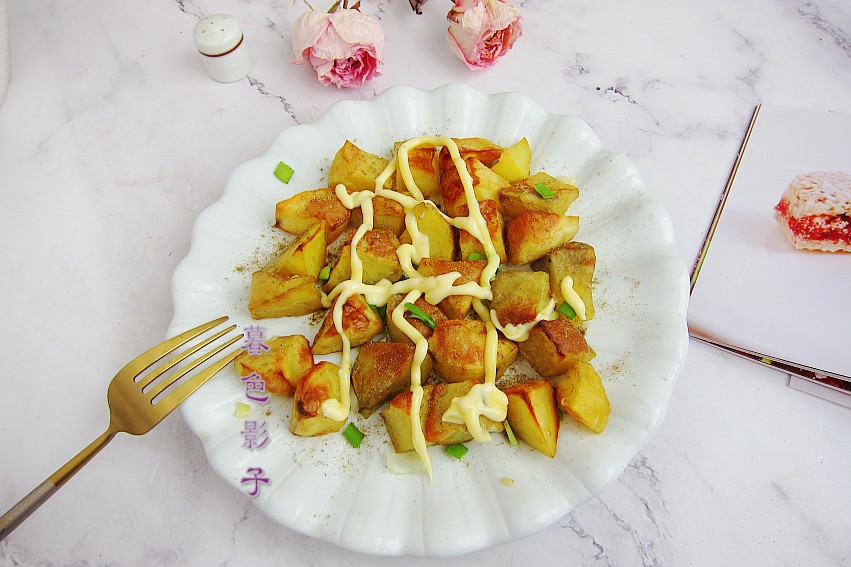 制作;选择黄心的土豆口感特别的好,削皮后用水冲洗干净。切成小块撒几滴植物油口感更好,晃动下烤盘,薯块均匀的沾满即可。