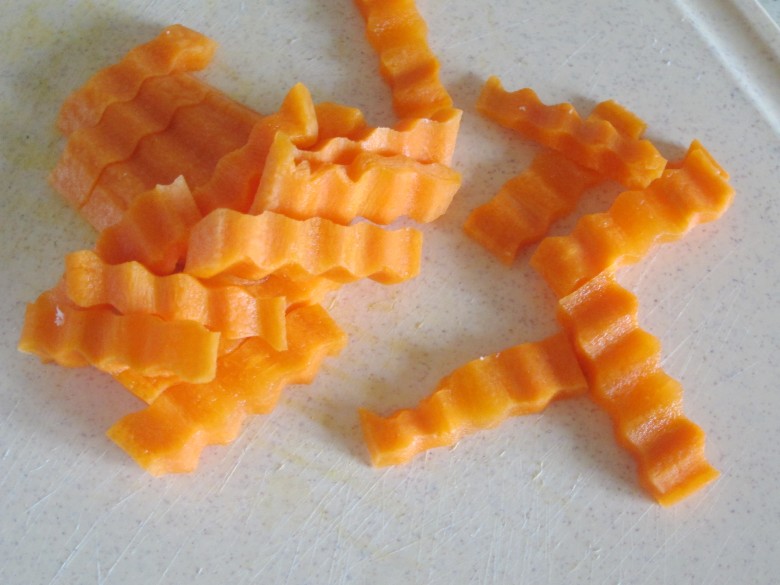 胡萝卜用花刀切成条,如果没有花式切刀,直接切成条即可。