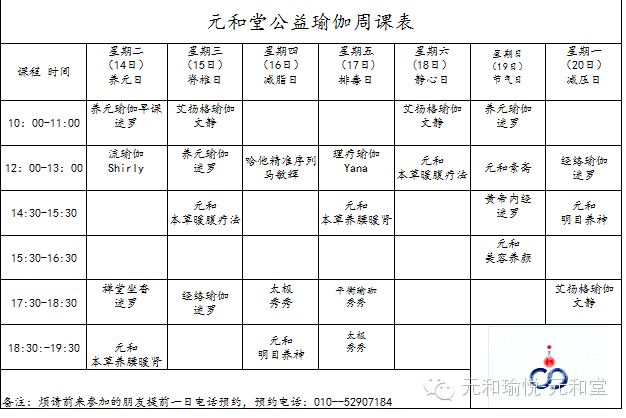 至此元和堂五周岁生日,以及人大馆三周年庆。特举办元和瑜伽周公益活动。仅需50元即可体验堂中全部七天课程并可获赠
