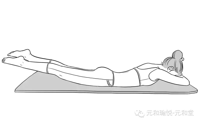首先趴卧在床面上,两个小臂交叠在一起,把额头搭在我们的小臂上。身体放平,意识放于双腿,吸气的时候让双腿充分地伸展伸直,呼气的时候向上抬起。