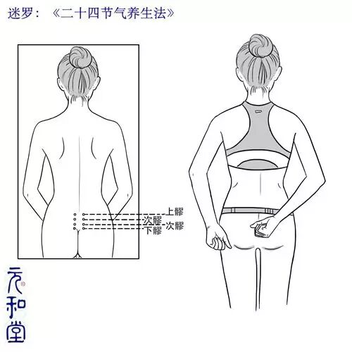 通关点评:此处是膀胱经中部的枢纽。刺激八髎穴可以清除上半身的毒素,改善腰背酸痛、坐骨神经痛、痔疮等问题。