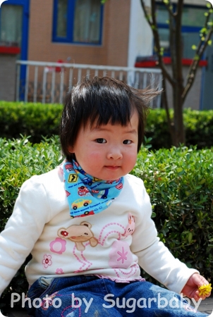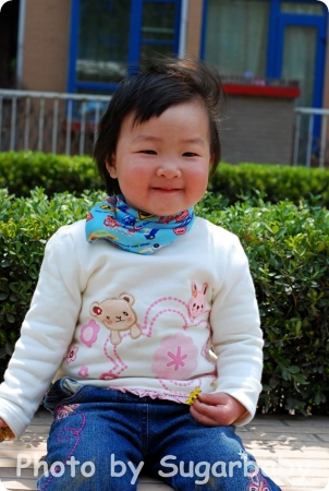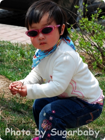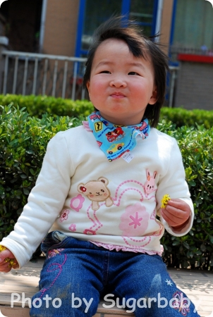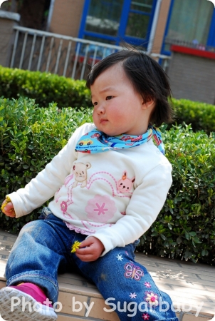 今天又很多事情要办,要去银行、去物业买车库、交暖气费等等。糖包小姐一起来就要去放风筝,拿着风筝在屋子里转来转去的,很想做到风筝上去。出门我倒是带上了风筝,可是一上午要办的事情太多了,根本没时间带她去放风筝啊,只好等下个星期了,可怜的阿宝。阿宝同学跟着我们这里逛逛,那里走走,非常听话,我估计她有点晕车,哈哈。反正是很乖很乖。今天阿宝的打扮也很漂亮,奶奶给买的小卫衣,很干净,阿宝同学自己挑的衣服,一定要穿小熊和小花的衣服。裤子是奶奶在英国买的,大牌就是不一样,小细节都做得很到位,还有个小腰带,真可爱,糖包的肚子很大,小屁股一翘一翘的,很是可爱。小牛仔裤很实用,可以穿很久,耐磨、禁脏,穿小了留给卷子同学,咔咔,真棒。