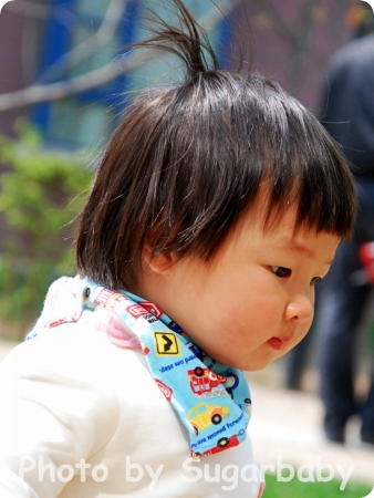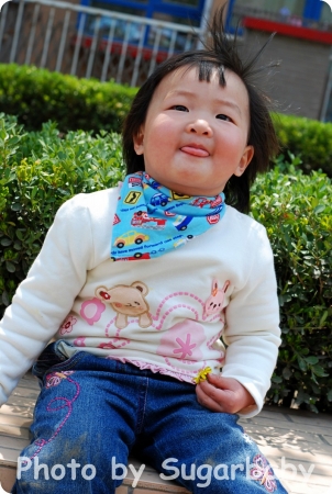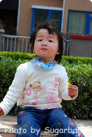 带阿宝回家,爸爸去剪头发了,糖包就在院子里玩,就是不进家门,过家门而不入。姥爷哦独已经把饭做好了,花卷已经抗议了,可是阿宝还是要玩,而且要去玩滑梯。晕。爸爸回来了,我们还没进家门呢,爸爸抱着阿宝去玩滑梯了,我只好颠颠的跟上。