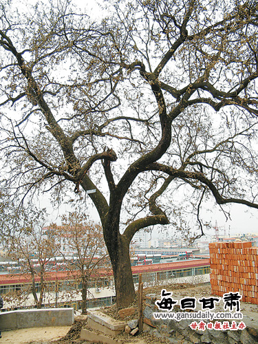 距城门不远,靠西北有一株古槐,枝叶茂密,参差披拂,经历800多年历史的风雨冲刷和朝代更迭仍然像一座宝翠珠缨的华盖耸立。