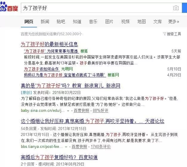 小编有为此百度了“为了孩子好”这几个字,结果也是让人无奈啊!