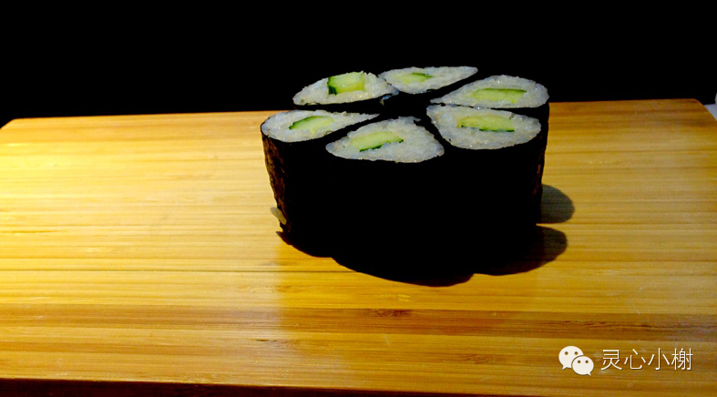 在学做寿司的过程中,感受到寿司还真是蛮健康的,除了配料清爽,由于分量也是有标准限定的,很难过量摄入。细卷使用80克米饭,须切成六块,里卷用150克米饭,须切成8块。算一算一次一人也就吃四五块吧,就是一两半的样子,是不是很容易控制热量呢?