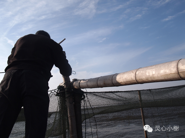 从屋前的码头坐挂机木船,开了约20分钟,才来到围网区,看到了真正阳澄湖大闸蟹的田园。听张叔说他家围网养蟹已传承百年,他是第3代,到小孙女圆圆该是第5代了。