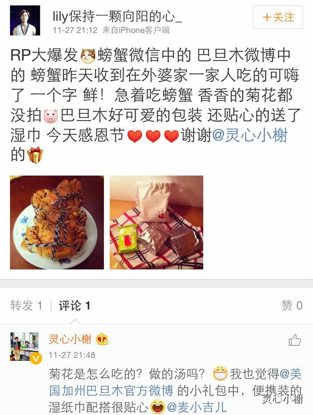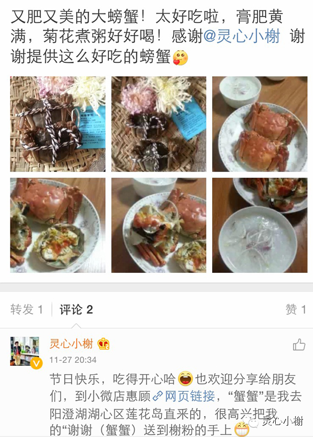 这天的奖品是@灵心小榭 珍选微店http://t.cn/RzvgHzp提供的“菊香蟹浓”品鉴装一份,题目答案是一周前写好的博文里|阳澄湖莲花岛探访大闸蟹的水上田园。