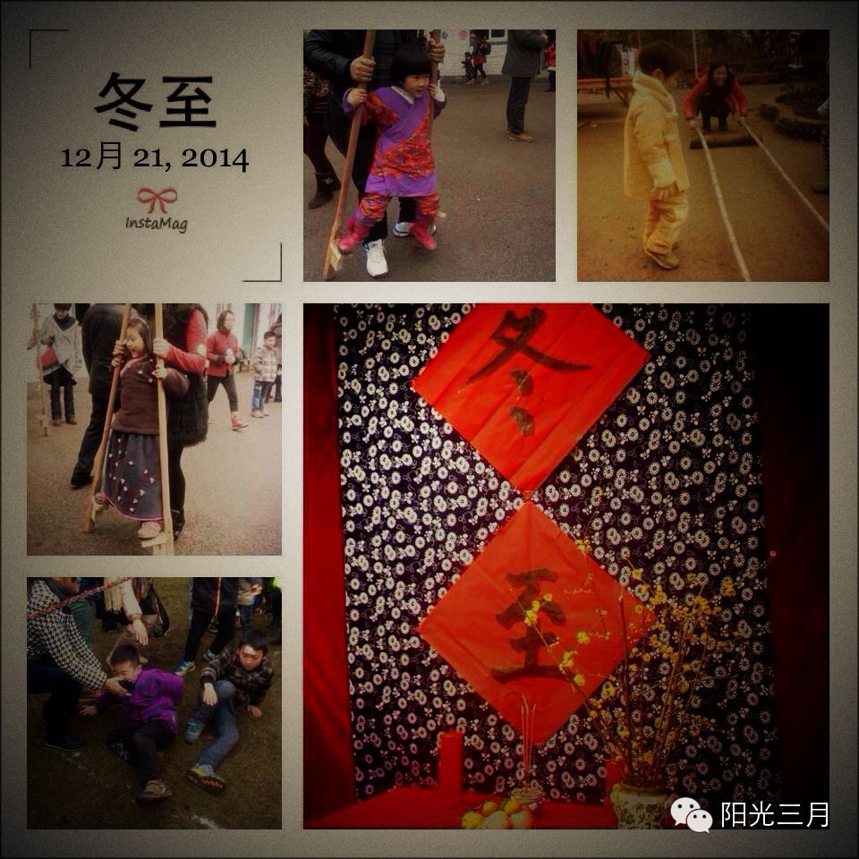 当外面的天气一天天变冷,我们会越来越渴望内在的温暖。内在的温暖来自人和人之间的关系。那些冬夜在外奔走的人,都想早早回到明亮,温暖的家里,和家人团聚。我小时生活在寒冷的北方,每一次做节日庆典活动准备时,我的脑海里浮现的总是家人从外往家里奔的情景;还有就是一家人围坐在一起包饺子;寒冷的夜晚,我们围坐在炕上边聊天边吃瓜子;过年时,家家户户串门……传递温暖——这是我们在设计冬至节活动时的其中一个核心。不仅是温暖孩子,我们大人在制造这种温暖的时候其实也在被温暖滋养。