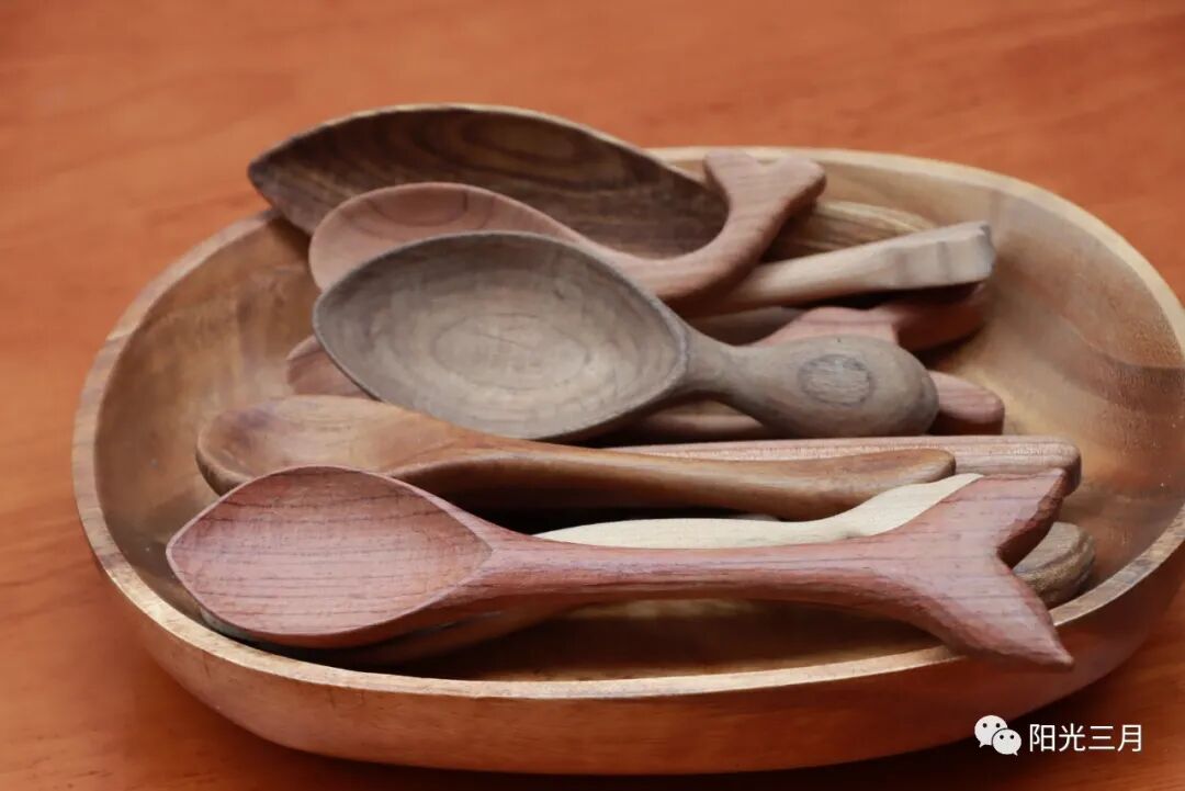 这些木碗拿在手上很有感觉: