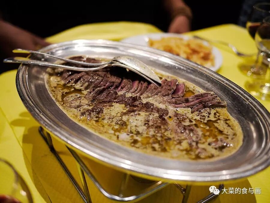 这家牛排馆太有名了,等着就餐的人总是大排长龙,餐厅的菜单很简单,蔬菜沙拉、炸薯条、炙烤牛排,但是每一样都非常好吃,牛肉按照点餐的生熟程度做好以后被切成薄片浸没在橄榄油中端上餐桌,肉质细嫩,有牛肉的甘香,非常美味。