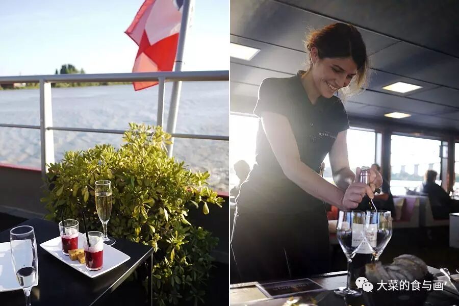 在波尔多的时候参加了一次含晚餐的游船,非常值得推荐。游船从被列为世界遗产的月亮桥码头出发,沿加伦河向北,沿途风光尽收眼底,同时享用着用当地食材烹饪的晚餐,之前我对游船上的晚餐不抱希望,但实际大家都觉得很美味,晚餐的食材新鲜,均来自阳光明媚的法国南部,并且是在船上的厨房现场制作。