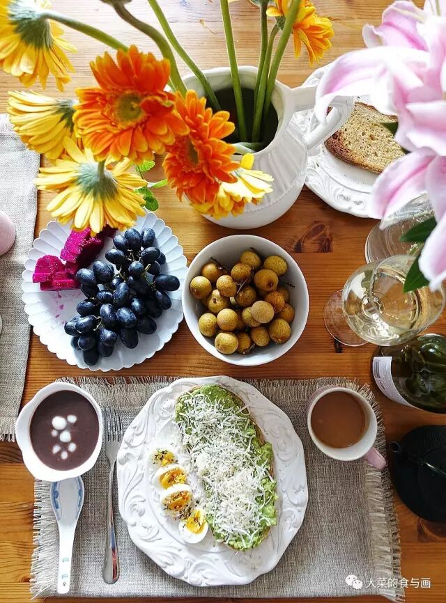 周末的早上,有充裕的时间可以在厨房玩,所以我和小小菜总是会鼓捣出一桌看起来很丰盛的早午餐。