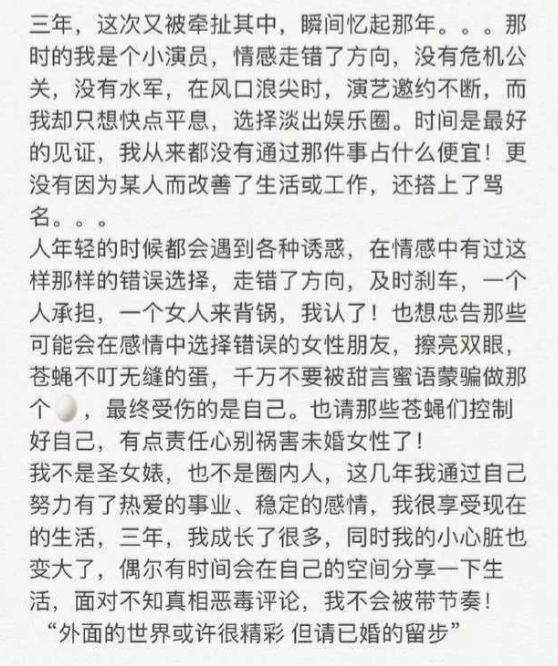 姚笛当年插足马伊琍的婚姻失败后,她做客《非常静距离》,被问到当年和文章的事情,姚笛说出了心里憋了多年的话:“我姚笛没有做过愧对良心的事。”后悔自己的情感被人欺骗,她说:“人在恋爱时,有时真的很傻,别人说什么话都相信。”赵雅淇这次也是学姚笛卖惨了。【本账号内容全部为落雪原创,禁止人渣们抄袭,违者必举报追责!】