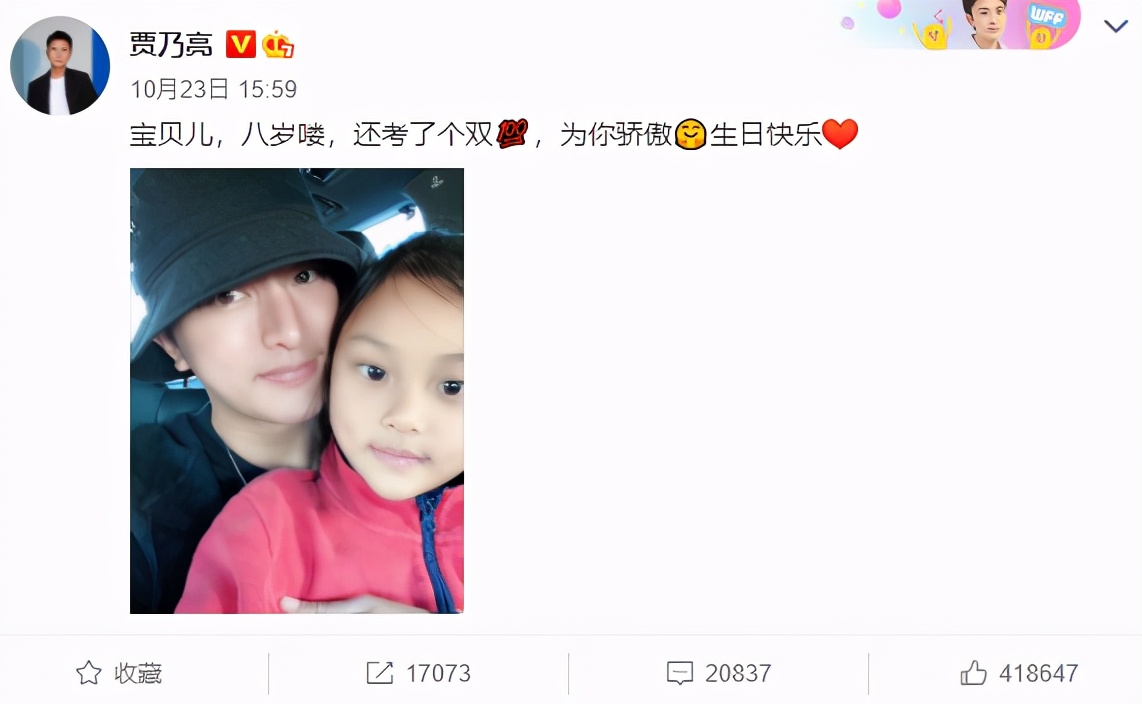 在这场风波中,最受伤的是贾乃亮。2019年11月3日,贾乃亮与李小璐离婚,女儿甜馨由李小璐抚养。如今甜馨已经8岁了。10月23日,贾乃亮在微博发了一张自己和女儿的照片,配文到:“宝贝儿,八岁喽,还考了个双百,为你骄傲,生日快乐!”言外之意感谢李小璐为女儿辛勤付出。