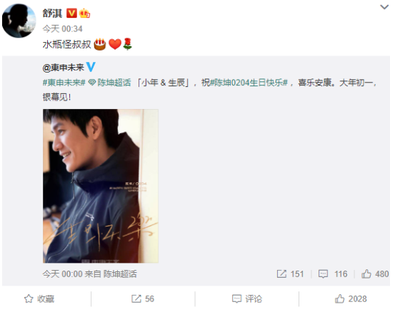2月4日是陈坤45岁的生日,舒淇也是在零点准时送祝福,称陈坤是“水瓶怪叔叔”,可见两人关系是多么的铁。去年舒淇生日,陈坤也卡在零点准时为她送上生日祝福,“女神,生日快乐。”还晒出了三张舒淇的美照,两人深厚的友谊也让人羡慕!