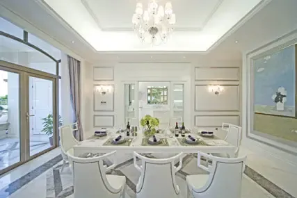 糅合巴洛克典雅风格与现代唯美主义,把宽敞舒适的空间修饰为富丽堂皇的尊贵府第,令人醉倒在满泻的浑黄灯光下。