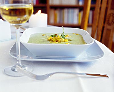 取南杏仁12克,雪梨一个,白砂糖30克。先将南杏仁用水稍浸泡去皮,雪梨切成四块。将杏仁、雪梨、白砂糖一齐放进炖盅内,加清水200毫升,隔水炖1小时后,饮汤食雪梨。本汤有清热生津、化痰止咳、润肺的作用。