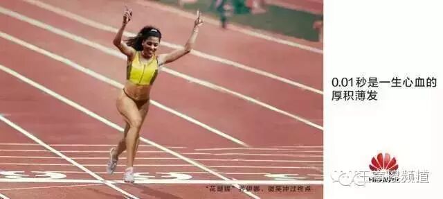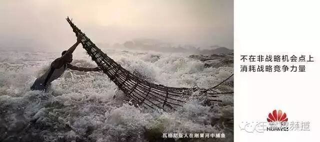 2016年华为企业形象广告为三幅图片:“捕鱼的瓦格尼亚人——不在费战略机会点上消耗战争竞争力”;“上帝的脚步声——欧洲核子研究中心,数十年的厚积薄发,似乎听到了上帝的脚步声”;“微笑的冲刺——0.01秒是一生心血的厚积薄发”。