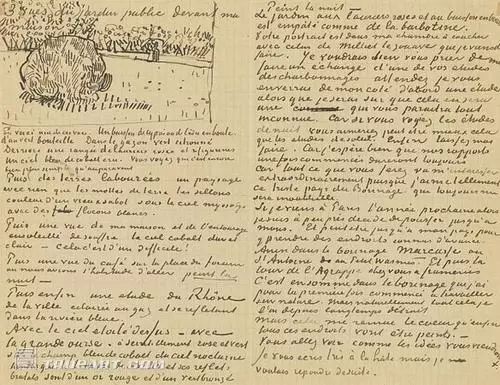 日后,我像什么都没发生一样继续的画画,我喜欢画自己,喜欢画阳光,喜欢画麦田,喜欢画自然。每画一幅画都夹着一封信寄给我弟弟。弟弟把我的画放在自己的画廊里,但始终没人购买。