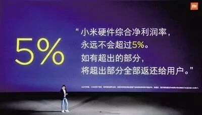 “从2018年起,小米每年整体硬件业务的综合净利率不会超过5%。如有超出部分,我们都将回馈给用户”。