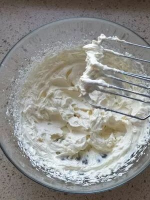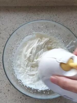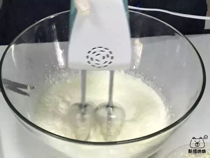 7.淡奶油用电动打蛋器高速打发,打到淡奶油出现纹路。