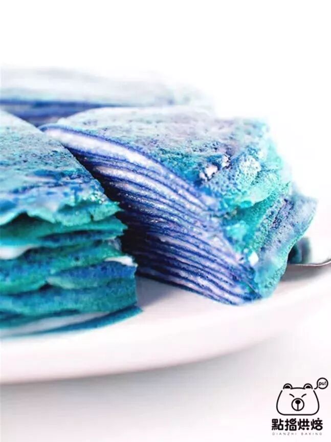 千层蛋糕是很多店里最受欢迎的一款甜品,许多妹纸在办公室叫下午茶都会选它。今天老S老师教的是蝶豆花千层蛋糕,用天然花青素染出小清新的蓝绿色,虽然制作时间稍长,但独特的颜色绝对能让你心动!
