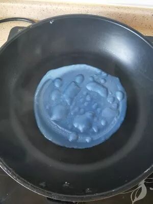 5.用平底锅以小火“摊饼”。摊完一张后要等平底锅稍微冷却一下后再摊另一张。