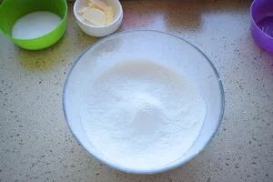 4.依次加入鸡蛋、澄粉、低粉、糖,搅拌均匀后过筛。