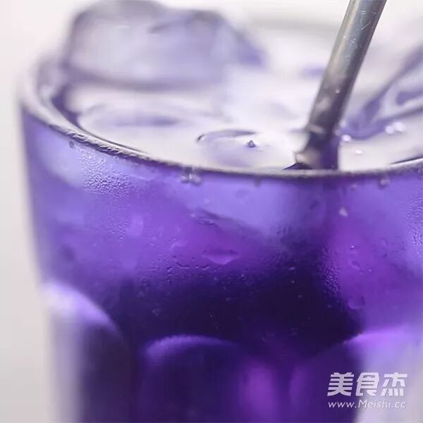 蓝蝴蝶泡出来是蓝色,为什么会变色,是因为花青素,花青素是水溶性色素,可随着细胞液的酸碱度改变颜色。遇到柠檬酸就会变成紫色,如果要变成红色(加更多点),如果想分层明显就加多点冰块。倒转来回摇动几下,颜色会不断变化。