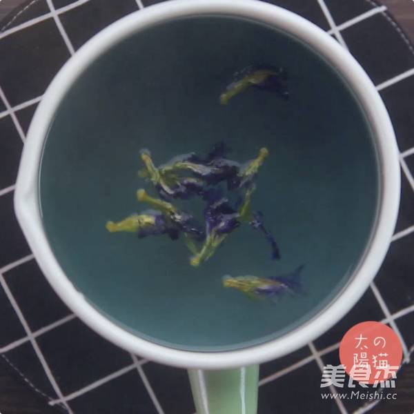 将水在锅中烧开,放入蝶豆花将其泡开,直到茶水变成深蓝紫色。