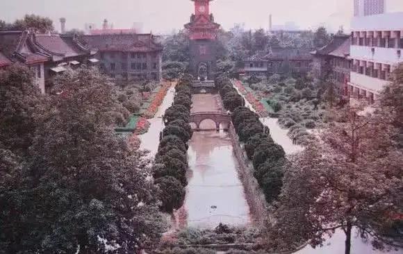 成都明远楼,今四川省科技馆。远处楼上有“明远楼”三个字。以前老川大就在里面办公教学。据说现在江安校区的明远湖,名称就源自于此。有下面的图为证。