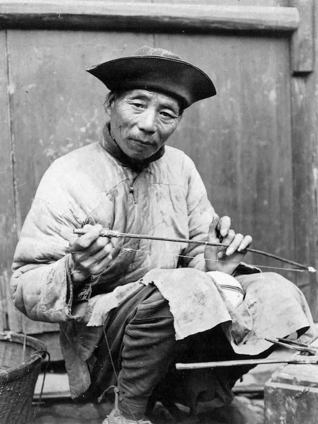 路边的艺人,服饰上还保留着清代的穿着,1920年。